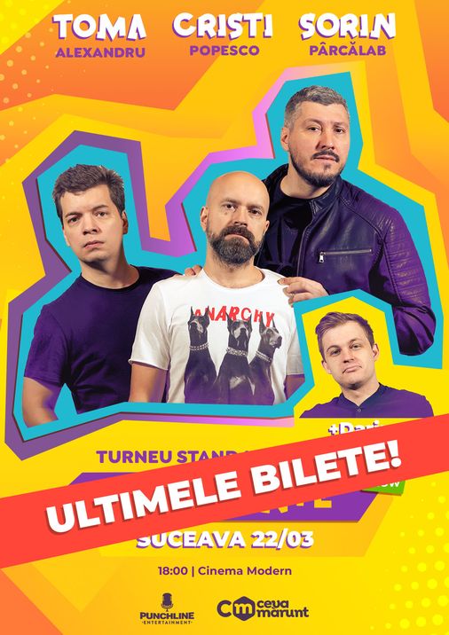 „Accidente” - Un nou show de Stand-up Comedy marca #CevaMărunt Subiecte? Cristi îmbină matematica cu toaletele publice, Toma a trecut de la vrăbiuțe la urși și Sorin a avut necaz cu niște bani greu de recuperat. Adică un spectacol LIVE pe care ar fi păcat să-l ratezi. Așadar, ia-ți biletele din timp!